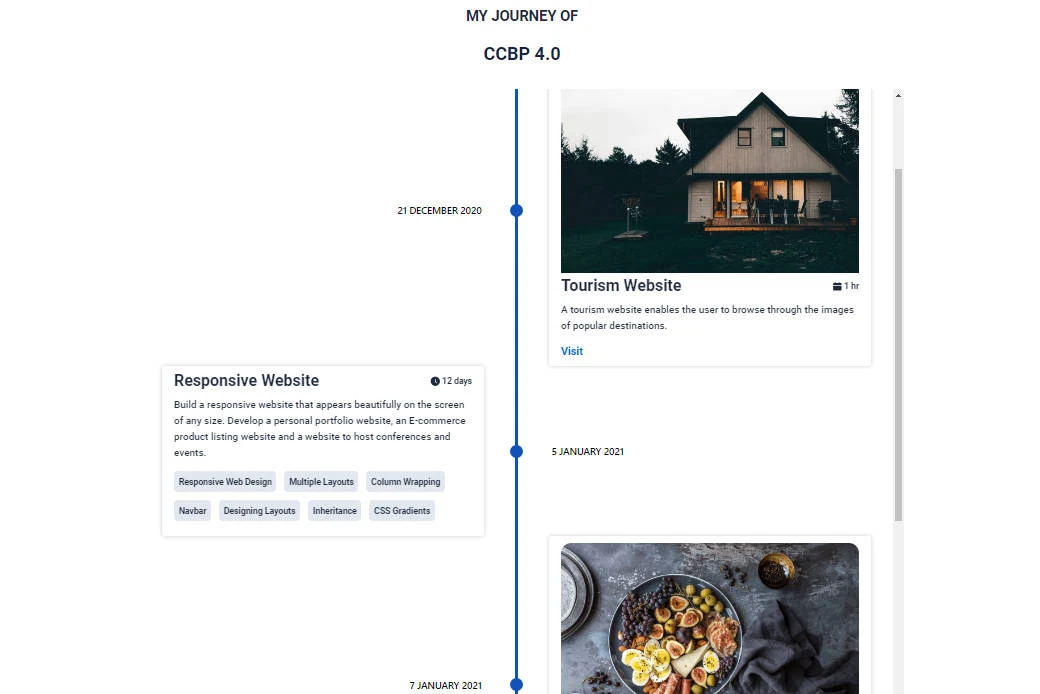 In this project, Vikas Kumar Yadav Will develop a modern timeline component for React. create a customizable and visually appealing CCBP (Create, Customize, Build, Publish) Timeline using React. This timeline component will enable users to display chronological events or milestones in a sleek and intuitive manner.